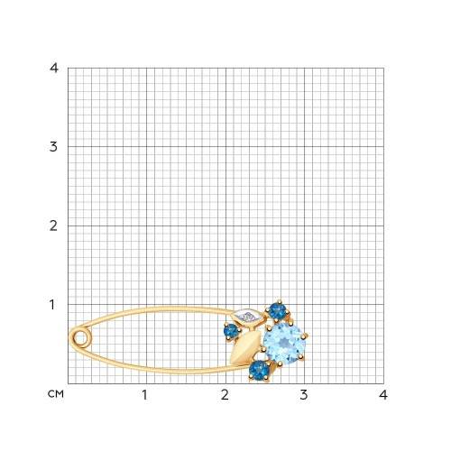 Брошь из золота с голубым и синими топазами и фианитом